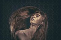 Deze prachtige afbeelding toont een elegante blonde dame die haar haar gracieus naar achteren zwaait. Haar gebaar straalt een gevoel van zelfverzekerdheid en verfijning uit, terwijl haar blonde lokken het licht op een betoverende manier opvangen. Het zorgvuldig gekozen behang in de achtergrond versterkt de algehele esthetiek van de foto en speelt een cruciale rol in het visuele verhaal.