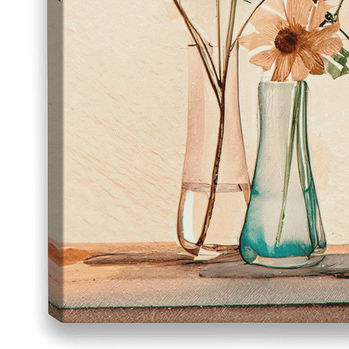 Koop dit moderne kunstwerk Elegant en stijlvol Stilleven: Rij vaasjes met veldbloemen van Studio Pieternel als print op canvas, aluminium dibond, (ingelijste) fotoprint, behang en ArtFrame. Voor jou op maat geprint in Fine-Art kwaliteit.
