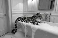 Koop de foto Elegant luipaard in de badkamer van Poster Art Shop op canvas, aluminium dibond, (ingelijste) fotoprint, behang en ArtFrame, op maat geprint in Fine-Art kwaliteit.