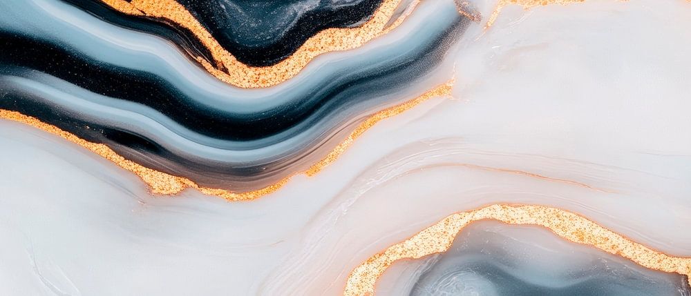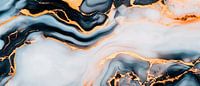 Een elegant samenspel van diepzwart en stralend goud, afgewisseld met zachte, wolkachtige witte tinten. Dit stijlvolle marmerpatroon straalt luxe en verfijning uit en is ideaal voor een woonkamer of moderne keuken, waar het kan dienen als een echte blikvanger. Perfect om een sfeer van tijdloze elegantie te creëren!