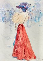 Elegant met een rode rok, Henry Somm (1890-1900)