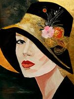 Elegante klassieke vrouw met hoedje in zwart met goud.