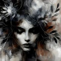 Dit werk, doordrenkt met warme bruintinten, omarmt de gracieuze vorm van een vrouw met bloemen in haar haar. De aardse bruinen creëren een rustiek en tijdloos esthetisch geheel, waarbij de bloemen symbool staan voor groei en vernieuwing. De organische verstrengeling drukt harmonie tussen mens en natuur uit, terwijl de vrouwelijke figuur zowel kracht als kwetsbaarheid uitstraalt. De subtiele details voegen een tastbare dimensie toe aan het kunstwerk. Abstract en inspirerend, past dit veelzijdige werk perfect in diverse interieurs als een tijdloze uiting van rust en natuurlijke schoonheid in warme bruintinten.