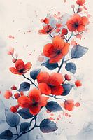 Dit werk toont een reeks delicate bloemen, die prachtig contrasteren met de omliggende bladeren en takken. De stijl is modern en minimalistisch, met een focus op de vloeiende vormen en subtiele details van de bloemen en bladeren. Er is gebruik gemaakt van zachte, organische lijnen die de natuurlijke schoonheid van de flora benadrukken. Het werk geeft een serene en elegante indruk van de moderne botanische stijl, waardoor de essentie en sfeer van deze kunstvorm tot leven komen.