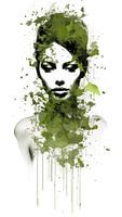 Dit intrigerende kunstwerk, gekenmerkt door "Elegante Groene Expressie," brengt een meisje met sprays van groene verf tot leven in de stijl van digitaal gemanipuleerde afbeeldingen. De elegantie van dit werk schuilt in de emotieve gezichten en aardse, organische vormen die samenkomen, terwijl exotische flora en fauna het geheel…