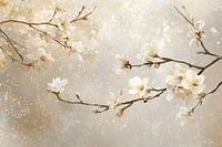 Dit ontwerp met delicate bloesemtakken straalt rust en elegantie uit. De zachte kleuren en het minimalistische karakter maken dit schilderij perfect voor iedere ruimte die een vleugje natuur en sereniteit kan gebruiken. De subtiele gouden accenten geven het geheel een luxe uitstraling zonder dat het overheerst. Dit kunstwerk past goed in een slaapkamer of eetkamer en is ideaal voor mensen die houden van een rustige en stijlvolle inrichting. Het ontwerp zorgt voor een verfijnde sfeer en brengt de schoonheid van de natuur naar binnen op een subtiele manier.