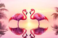 Elegante flamingo's bij zonsondergang van Art & Soul Creations
