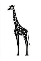 Deze gestileerde afbeelding toont een elegante giraffe wiens slanke, lange nek en karakteristieke, onregelmatige vlekken onmiddellijk in het oog springen. De contrasten tussen het zwarte lichaam en de witte achtergrond versterken de gratie van het dier en benadrukken de majestueuze verschijning van dit fascinerende schepsel.