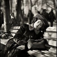Deze prachtige zwart-witfoto toont een vrouw in klassieke, elegante kleding die vredig slaapt op een bankje in het park. De foto vangt de sfeer van vervlogen tijden en voegt een nostalgisch tintje toe aan elke kamer. Ideaal voor liefhebbers van klassieke kunst en fotografie die een vleugje geschiedenis en elegantie in hun huis of…