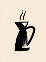 Dit minimalistische penseellijnmotief toont een elegante schenkkan, teruggebracht tot een paar duidelijke penseelstreken. De gebogen tuit en het kenmerkende handvat geven de illustratie een direct herkenbaar karakter, terwijl de zachte zwarttinten op de warme beige achtergrond een kalme, moderne esthetiek creëren.