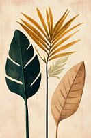 Een harmonieus samenspel van zachte groene tinten en aardse beige nuances ontvouwt zich op dit kunstwerk. De gestileerde bladeren zien er elegant en tijdloos uit en brengen een vleugje natuur in huis. Ideaal voor de woonkamer of een rustig leeshoekje, waar ze een ontspannen sfeer creëren en je uitnodigen om te dagdromen.