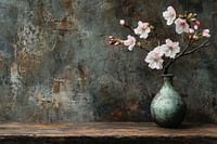 Bij het aanschouwen van dit stilleven lijkt de tijd even stil te staan. Een elegante vaas met schitterende witte bloemen staat centraal op een rustieke houten tafel. De rijke, donkere achtergrond benadrukt de verfijning en rust van de scène, waardoor de delicate bloemen nog meer opvallen. De combinatie van het houten oppervlak en de zachte bloemen creëert een sfeervolle harmonie. Dit kunstwerk voegt een vleugje verfijning en klasse toe aan elke ruimte, perfect voor wie houdt van een ingetogen, doch stijlvolle uitstraling. Laat de schoonheid van eenvoud je inspireren en verrijk je interieur met deze tijdloze compositie.