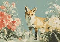 Een elegante vos staat te midden van bloeiende bloemen, afgebeeld in een op vintage geïnspireerde illustratie. Zachte pastelkleuren en zachte penseelstreken geven het motief een delicate, dromerige sfeer. De harmonieuze compositie van bloemvormen en het sierlijke dier creëert een kalme, poëtische sfeer. Het kunstwerk combineert klassieke esthetiek met moderne lichtheid en vangt de schoonheid van de natuur op een stijlvolle manier - een tijdloos motief vol charme en elegantie.