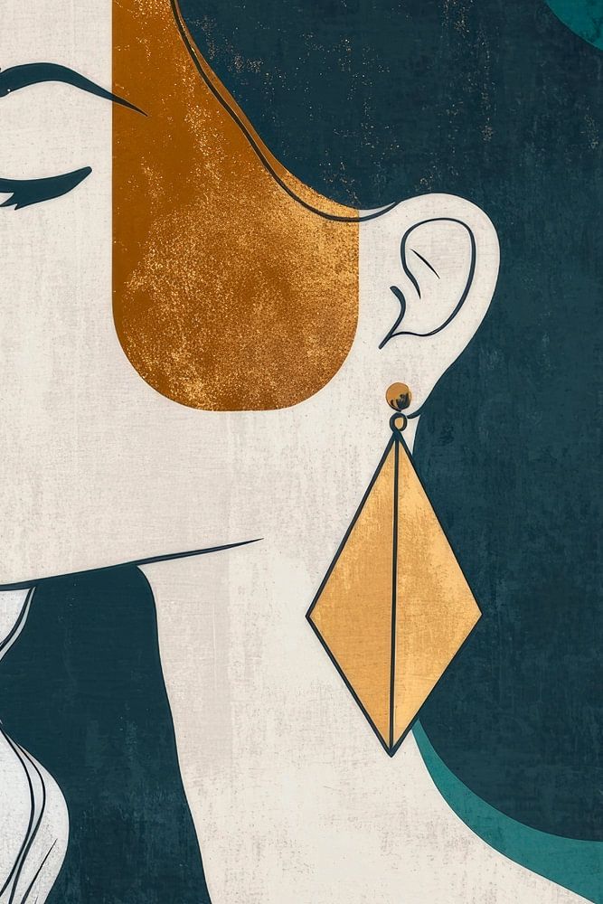 Een artistiek silhouet dat elegantie en kracht uitstraalt. De zachte lijnen en intense kleuren, vooral het heldere goud en diepgroen, geven de compositie een bijzondere diepte. Dit stijlvolle portret is perfect voor een moderne woonkamer of een inspirerend kantoor, waar het kan inspireren tot bewondering en gesprek.