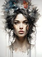 Een mysterieuze mooie vrouw uit een selectie van meer, met een geverfd gezicht trekt de aandacht met haar unieke kunstwerk. Haar huid is een levend canvas, waarop ze expressie en identiteit uitdrukt, terwijl ze de grenzen van conventionele schoonheid trotseert en haar ware zelf omarmt. Check ook mijn andere selecties van dit schilderij, wellicht zit daar een beter fit tussen. Past bij diverse trends!