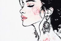 Details: vrouw, oorbellen, schilderij, elegant, rustige kleuren, portret, zwart-wit, roze, modern, kunst
