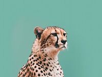 "Elegantie in Snelheid" vangt het serene profiel van een jachtluipaard tegen een levendige, eenduidige achtergrond. De focus ligt op de prachtige vlekken en de zachte contouren van het gezicht, waarbij elk detail met zorg is vastgelegd - van de fluweelachtige neus tot de scherpe blik in de ogen. Deze afbeelding belichaamt de gracieuze snelheid en nobele schoonheid van een van de snelste landdieren op aarde. Met zijn strakke compositie en frisse achtergrond zou dit portret een dynamische toevoeging zijn aan een modern interieur, perfect voor de natuurliefhebber die een voorkeur heeft voor minimalistische elegantie.