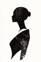 Een krachtig silhouet ontvouwt zich in eenvoudige, elegante lijnen. De stijl wordt gekenmerkt door een harmonieuze combinatie van rand en ronding, terwijl het diepe zwart mysterieus en beklijvend is. De focus op de vorm van het lichaam straalt gratie en kracht uit, alsof het figuur verhalen van zelfvertrouwen en schoonheid vertelt.