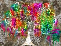 Het werk "Elegantie in kleur" is een unieke combinatie van elegantie en straatkunst. De tekening van de vrouw met haar volumineuze krullende haar, uitgevoerd in wit op een rauwe bakstenen muur, is op zichzelf al een indrukwekkend kunstwerk. Maar door de toevoeging van de kleurrijke graffiti krijgt het werk een nieuwe dimensie en komt…