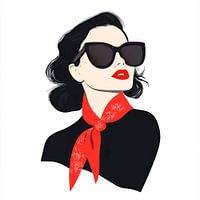 De foto toont een gestileerde vrouw met glamoureuze charme. Haar oversized zonnebril en felrode lipkleur geven haar een onmiskenbare uitstraling. De felrode sjaal voegt een levendig accent toe en contrasteert harmonieus met haar elegante, donkere outfit. Haar vrolijke glimlach straalt zelfvertrouwen en stijl uit.