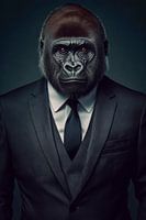 In een fascinerend samenspel van mens en dier presenteert zich een imposante figuur: een gorilla met een uitdrukking van diepe intelligentie en kracht, gekleed in een elegant pak. De combinatie van een krachtige dierlijke vorm en menselijke elegantie creëert een intrigerende spanning die aanzet tot nadenken over macht en identiteit.