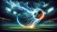 Koop dit digital art kunstwerk Elektrische storm: voetbal onder bliksem van artefacti als reproductie op canvas, aluminium dibond, (ingelijste) fotoprint, behang en ArtFrame, op maat geprint in Fine-Art kwaliteit.