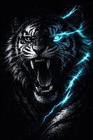 Dit krachtige digitale kunstwerk vangt de rauwe woestheid van een brullende tijger doordrenkt met elektrische blauwe bliksem. Tegen een diepzwarte achtergrond benadrukt de compositie contrast, intensiteit en dominantie. Het gloeiende oog en de knetterende energie symboliseren kracht, oerinstinct en onstuitbare macht. Dit ontwerp, dat…
