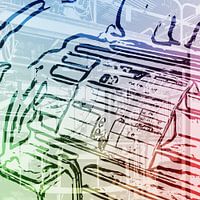 Elektromotor in een kunstzinnige bewerking. Toen Jan van den Broek bezig was met het creëren van een groot kunstwerk, had hij dit soort beelden nodig en gebruikte hij deze vervolgens om er apart werk van te maken.