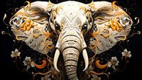 De olifant staat centraal in de compositie, met een krachtige blik die direct de aandacht trekt. Rondom de olifant zijn sierlijke…