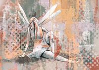 Elf - mixed media in oranje groen en roestbruin van Emiel de Lange