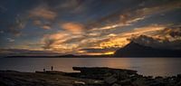 Father and son fishing in Elgol at sunset, Isle of Skye, Scotland