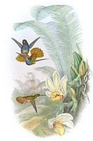 Elicia's Golden Tail (Chrysuronia Eliciæ), John Gould Van deze charmante kleine vogel is weinig of niets verder bekend dan dat het een inwoner van Midden -Amerika is, vanwaar ik exemplaren rechtstreeks van verschillende correspondenten heb ontvangen, onder wie ik M. Warszewicz, M. Salle en George Ure Skinner, Esq mag noemen .; Alle voorbeelden van de laatste heer werden in Guatemala verkregen. Deze illustratie is hersteld in zijn oorspronkelijke levendigheid door kleuren te verbeteren en ongewenste tekens te verwijderen. Een monografie van de trochilidæ, of familie van zoemende birds werd gepubliceerd tussen 1849 en 1887 door de Engelse ornitholoog John Gould. Dit monumentale werk toont en beschrijft destijds alle bekende soorten kolibries - bestaande uit 418 lithografische platen en informatie over 537 soorten. "