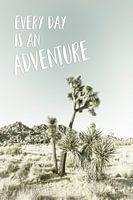 Schraal landschapsbeeld met Joshua Trees. Een ontwerp dat past bij het motto van het leven. EVERY DAY IS AN ADVENTURE. IS ELKE DAG EEN AVONTUUR. Elke dag is een avontuur!