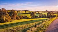 De akkers en velden tussen Elkenrade en Wijlre met lange schaduwen tijdens zonsondergang.