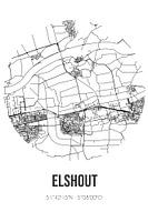 Zwart-witte landkaart, stratenplan of plattegrond van Elshout. Elshout is gelegen in de gemeente Heusden, provincie Noord-Brabant. Op de stadskaart zijn alle openbare wegen in Elshout opgenomen. Verder is de kaart voorzien van de coördinaten van het centrum van Elshout.