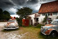 Een pannenkoekenhuis langs de weg op het eiland Gotland vlak voor de kust van Zweden. Een verzameling Old timers her en der verspreid over het terrein als trekpleister. De donkere lucht op de achtergrond maakt het plaatje helemaal compleet. Maar de kers op de taart blijft toch het naambordje boven het raampje....