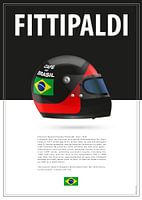 Afdrukken met de persoonlijke valhelmen van beroemde autocoureurs uit de jaren 1970.