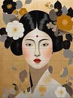 Het portret van Emiko uit de serie "Tegelwand Kunst" illustreert de schoonheid, het mysterie en de unieke charme van vrouwen van over de hele wereld. Het unieke idee om elk kunstwerk te laten lijken op een tegelwand voegt een opvallende textuur en diepte toe die de individuele schoonheid van elk model extra benadrukt. Deze stijl zorgt ervoor dat elk portret echt in het oog springt en trekt de aandacht als een visueel middelpunt in elke ruimte. Het nodigt uit om langer te kijken en de verhalen achter de mysterieuze blikken en elegante poses te ontdekken. Elk portret is opvallend in kleur en uitstraling, fris en illustratief, versierd met bloemen, vogels en abstracte vormen, perfect voor iedereen die een vleugje internationale elegantie aan hun omgeving wil toevoegen.