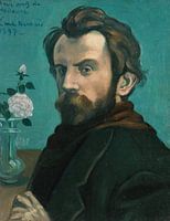 Portret waarbij de kunstenaar zichtzelf afbeeldt als een man met snor en baard.