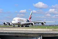 Een Airbus A380 van Emirates (de A6-EDG) voorzien van een special livery van de organisatie United for Wildlife.