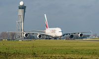 Emirates Airbus A380 is aangekomen op Schiphol.