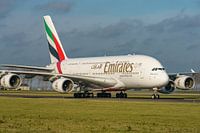 Emirates Airbus A380 is aangekomen op Schiphol.