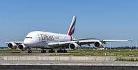 Emirates Airbus A380 taxiet naar de Polderbaan.