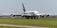 Deze Airbus A380-800 van Emirates vliegt (in 2016) dagelijks tussen uit Dubai en Schiphol.