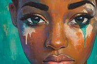Een krachtig portret dat indruk maakt met intense ogen en emotionele tranen. De zachte kleurovergangen geven de afbeelding een diepe sfeer. Ideaal voor een woonkamer of leeshoek, waar het tot nadenken stemt en op indrukwekkende wijze de emotionele diepte van het menselijk leven weergeeft.