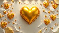 De afbeelding toont een betoverende schikking van harten, die in verschillende maten en vormen op een zachte achtergrond worden gepresenteerd. Elk hart straalt zijn eigen energie uit en lijkt verbonden te zijn in een harmonieuze dans. De verschillende texturen en patronen van de harten geven de afbeelding een speelse diepte en creëren een sfeer vol liefde en genegenheid.