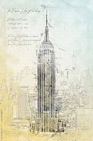 Koop de illustratie Empire State Building, New York van Theodor Decker op canvas, aluminium dibond, (ingelijste) fotoprint, behang en ArtFrame, op maat geprint in Fine-Art kwaliteit.