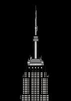 Torenspits van het Empire State Building in New York bij nacht in zwart-wit. Handgetekende illustratie.