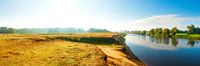 Idyllisch landschap met rivier, weilanden en bomen