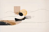 Minimalistische abstracte compositie die doet denken aan de vorm van een geest'une pirogue voguant sur l'eau. Paysage onirique, laissant libre place à l'imaginaire... Des couleurs et des formes douces à peine suggérées, des lignes souples invitant au voyage et à la sérénité de l'.